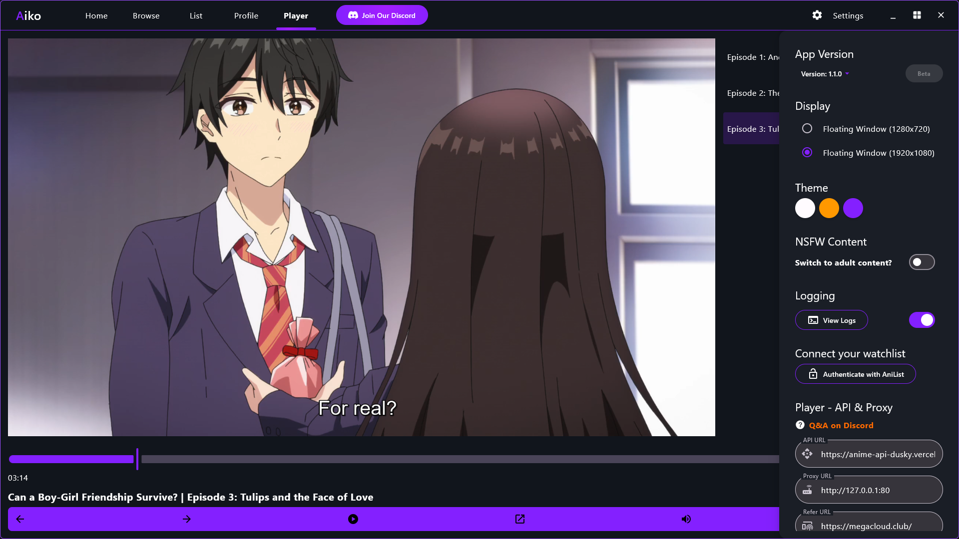 Manage your watchlists from Anilist and MyAnimeList, stay updated with the latest anime news, and stream your favorite shows through a self-hosted API.